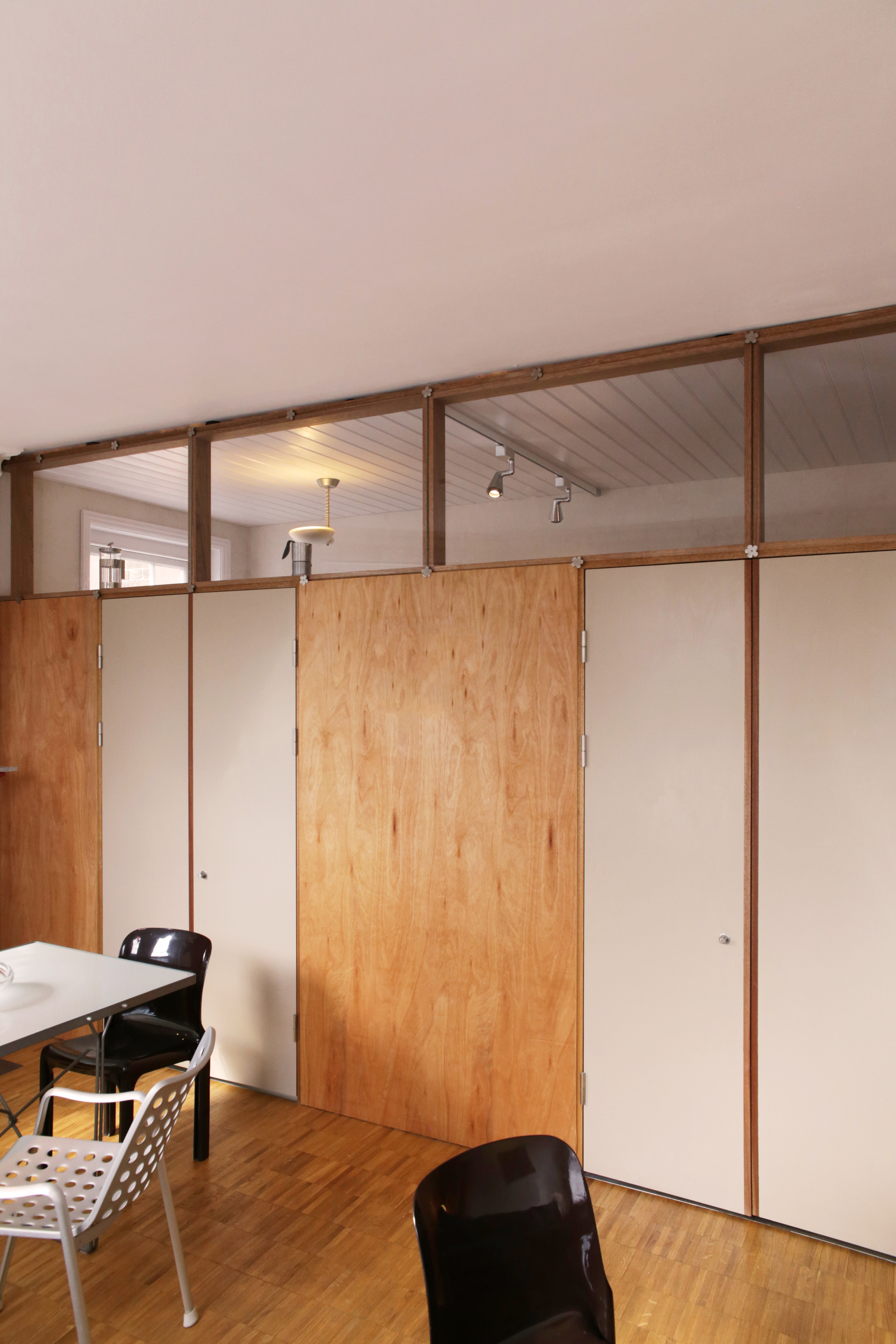 This project is about re-establishing generous, well proportioned rooms. A corridor is removed, a lobby is enlarged enough to become another type of space and the living spaces are better defined. complex and precise technical solutions are used for sound and drainage issues while the main spaces are left as bare and basic as possible.